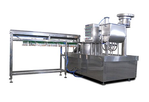 This machine is suitable for filling and capping spout pouch with liquids, such as jelly, soymilk, milk, yogurt, pure water, fruit juice, ice cream, edible oil, seasoning, washing liquid, etc. Filling volume is 30 – 500 ml. To operate the machine needs compressed air with a pressure of 0.5 – 0.8 MPa.
