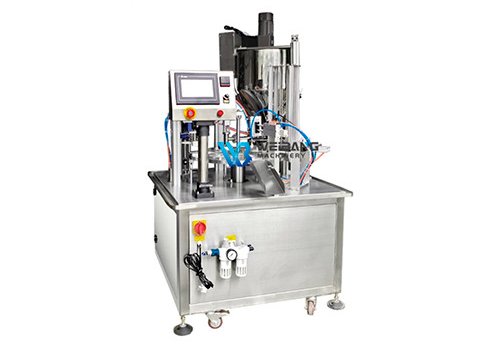 Эта машина представляет собой многофункциональную и усовершенствованную машину для наполнения стаканчиков для йогурта. Отличается автоматическими загрузкой стаканчиков, наполнением, укупоркой и подпрессовкой крышки. Подходит для розлива молока, сока, меда, воды и фасовки гранул, порошка, фруктов, чипсов и так далее. Для работы машине необходим подвод сжатого воздуха давлением 0,5 - 0,75 МПа.