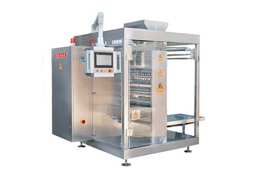 Машина фасует чай, рис, бобовые, сахар, макароны, моющие средства и гранулированные вещества в четырехсторонние саше-пакеты. Скорость до 150 саше/мин (50 на ручей), шнековый дозатор с сервоприводом и управлением от ПЛК, любая термосвариваемая пленка. Мощность 3 кВт, 400 В, 50 Гц, трехфазное, макс. диаметр рулона 600 мм, посадочный диаметр втулки 76 мм. Габариты 1500x1325x1700 мм, вес прибл. 1500 кг.