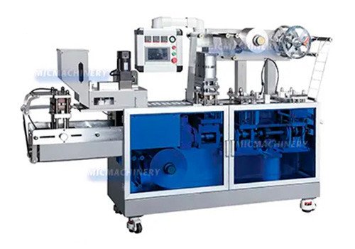 Блистерная упаковочная машина MIC-DPP-80 запечатывает продукцию в предварительно сформированные ячейки, обеспечивая как защиту, так и видимость содержимого. Машина используется в фармацевтической промышленности для запечатывания таблеток и капсул. Частота резки: 10-40 т/мин