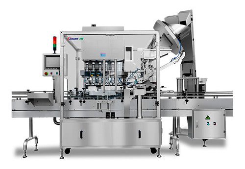 Данная серия машин используется для навинчивания винтовых крышек на бутылки в фармацевтической и других отраслях. Бутылки подаются по конвейеру на станцию укупорки, где сервоприводный захват подбирает и прижимает крышки с помощью трехкулачкового цилиндра. Отличается обнаружением дефектов (отсутствие крышек или фольги), синхронизацией с движением бутылок и быстрой сменой пресс-форм. Конструкция из нержавеющей стали соответствует GMP, опционально доступна система контроля крутящего момента.