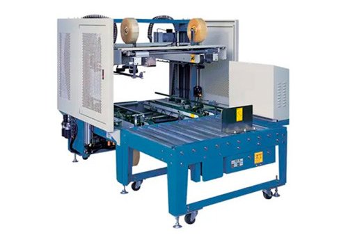 Это система с верхним и нижним ременным приводом, заклеивающая все четыре ребра для усиленной экспортной упаковки. Она оснащена автоматической регулировкой ширины и высоты для коробов произвольных размеров, управлением через ПЛК и выталкивающим конвейером с поворотом на 90 градусов для нанесения Н-образной ленты. Работает с коробами размером от Ш250-600 мм, В225-600 мм, Д300-650 мм. Производительность: 4-5 коробов/мин для случайных размеров, 10-12 коробов/мин для однотипных. Головка для ленты вмещает рулоны 900 м.