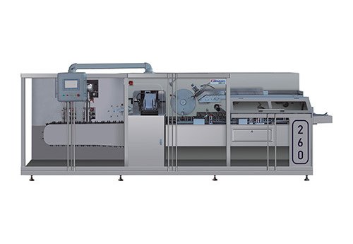 Машина используется для высокоскоростной укладки в коробки алюминиево-пластиковых блистеров, бутылок, туб и пакетов в фармацевтической упаковке. Она отличается простой и доступной конструкцией для легкого обслуживания и поиска неисправностей. Ременный синхронный привод исключает износ и необходимость смазки. Механизм мгновенного отделения и останова при замятии коробки предотвращает повреждения и отходы, позволяя быстро возобновить работу после устранения замятия.