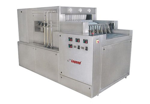 Полностью выполнена из нержавеющей стали, включая раму. Форсунки высокого давления обеспечивают идеальную мойку бутылок. Все контактирующие детали (зона мойки, форсунки) выполнены из нержавеющей стали 316. По запросу заказчика возможна установка рециркуляции оборотной воды для мойки. В зависимости от модели производительность составляет от 90 до 180 бутылок в минуту.
