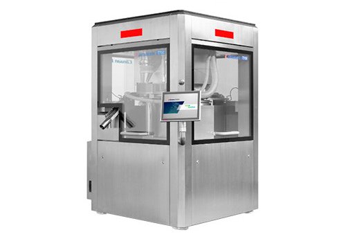 Данный таблеточный пресс используется в фармацевтической, химической, пищевой и электронной промышленности. Он прессует порошки в круглые, овальные или двухслойные таблетки. Оснащен сервоприводом для дозирования и главного сжатия с точностью 0,01 мм, предварительным и основным давлением до 100 кН и автоматической корректировкой веса. Обеспечивает двустороннюю подачу, двустороннюю выгрузку и индивидуальное отбраковку таблеток. Машина соответствует стандартам GMP и FDA.
