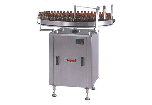 Выполнен из нержавеющей стали 304. Скорость работы регулируется частотным преобразователем. Специальные самовыравнивающиеся подшипники обеспечивают плавную беспроблемную работу. Подходит для работы с различными типами тары. Редуктор обеспечивает бесшумное продвижение бутылок без рывков. Соответствует текущим нормам GMP.