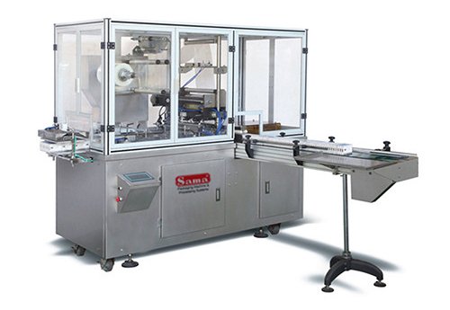 Оберточная машина применяется для упаковки продукции обертыванием. Например, сигарет в пачках, мобильных телефонов, конфет в коробках, парфюмерии и другой продукции в коробках. Производительность 30 – 45 коробок в минуту.