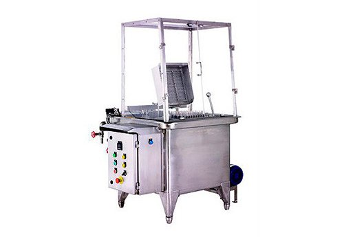 Полуавтоматическая система мойки флаконов и ампул, использующая специальные лотки, на которых флаконы и ампулы моются под стационарными форсунками с равномерным распределением давления воды. Лотки загружаются вручную, один за другим проходят под форсунками и вручную же выгружаются. Вся конструкция выполнена из нержавеющей стали и других устойчивых к коррозии материалов.