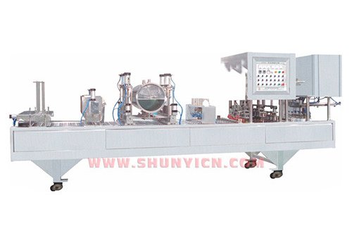 Данная машина предназначена для наполнения и запайки таких продуктов, как свежее молоко, джем и мороженое в тару с предварительно вырезанными крышками. Она выполняет полностью автоматический процесс от подачи и наполнения стаканчиков до размещения крышки и запайки. Машина работает на высоких скоростях 5400–7200 стаканчиков в час с объемом наполнения 400 мл на стаканчик. Она предлагает управление на базе ПЛК и использует высококачественные комплектующие для надежной, эффективной и универсальной упаковки.