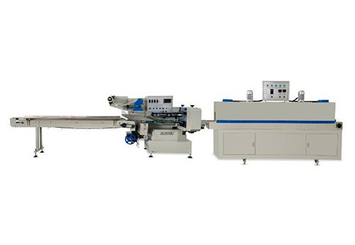Это автоматическая система с конвейерной подачей для упаковки мелких продуктов в термоусадочную пленку по типу "подушечки". Она работает со скоростью 50-120 пакетов в минуту и может упаковывать изделия шириной 25-280 мм, длиной 65-350 мм и высотой 20-100 мм. Машина использует серводвигатели, работает с толщиной пленки 0,03-0,06 мм (ПП, ПОФ, ПВХ) и оснащена цветным сенсорным интерфейсом.
