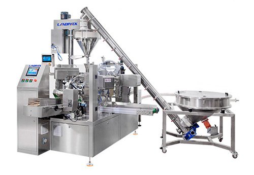 Это ротационная система, предназначенная для автоматического наполнения и запайки различных порошковых продуктов, таких как сухое молоко, мука и приправы, в готовые стоячие пакеты, пакеты с застежкой-зиппер или пакеты с боковыми складками. Она обрабатывает пакеты шириной от 80 до 300 мм и длиной от 100 до 350 мм, с диапазоном объема наполнения от 5 до 2500 грамм. Машина работает со скоростью от 30 до 60 пакетов в минуту и сохраняет высокую точность упаковки с погрешностью дозирования ≤ ±1%.