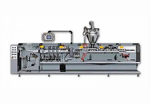 Машина может оснащаться питателями разных типов, такими как шнековым питателем на сервоприводе, мерной чашей, плунжерным насосом, гравитационным питателем и весовым дозатором. Управление под ПЛК, все контактирующие с продукцией детали выполнены из нержавеющей стали. Размер пакета 50 – 70 x 90 – 180 мм. Производительность 210 пакетов в минуту.