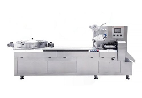 Машина упаковывает конфеты, шоколад, гранулы говядины и цукаты. Скорость 50-1000 упаковок/мин, длина пакета 45-120 мм. Отличается трехсервоприводной системой с сенсорным экраном, увеличенным сортировочным лотком, независимыми секциями машины и рамой из нержавеющей стали 304. Мощность 3,5 кВт, напряжение 220/380 В, 50 Гц, габариты 3450×1300×1600 мм, вес 800 кг. Подходит для дисков, сфер, квадратов, прямоугольников, эллипсов и цилиндров. Сертификат CE.