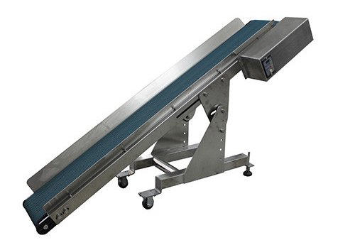 Конвейер транспортирует малые и средние упаковки. Отличается конструкцией из нержавеющей стали и алюминия, шириной ленты 200 мм, регулируемыми горизонтальным положением и наклоном 35°, лентой из ПВХ. Регулируемая скорость, мощность 120 Вт, 3 фазы, 220/415 В, 50 Гц. Высота опоры 560 мм. Совместим с оборудованием компании Highpack для интеграции по принципу «подключи и работай». Надежный и долговечный с минимальным обслуживанием.