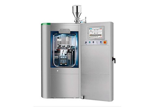 Машина предназначена для эффективного производства партий различных размеров. Она достигает скорости до 223 200 таблеток в час и имеет систему быстрой смены револьверной головки для нескольких форматов оснастки (D, B, BB, BBS). Ключевые возможности включают автоматическое регулирование веса, отбраковку отдельных таблеток, полную отчетность по партиям и соответствие текущим нормам GMP и CFR Часть 11.