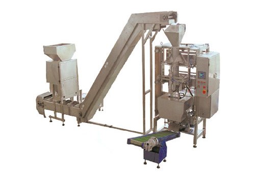 This packing unit consists of one vertical vacuum packing machine for vacuuming and bagging, one set linear weigher for weighing, one vertical bucket elevator for feeding, one platform for supporting weigher and one conveyor for taking off the finished bags. It integrates functions of automatic bag-making, weighing, filling, vacuuming, sealing, printing, cutting. Max. speed: 30 BPM
