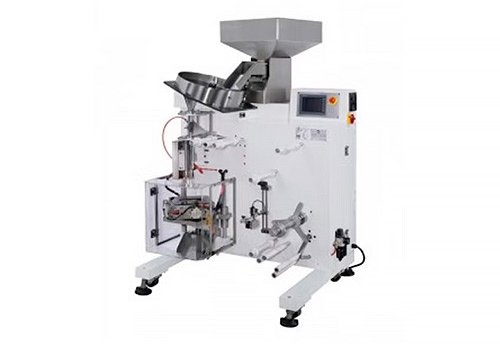 This is a form-fill-seal unit for packaging small solid items like candy, nuts, or chocolate into pillow, triangle, or 3-side seal pouches. It handles pouch sizes from 50–170 mm in length and 40–90 mm in width, with a capacity range of 1–30 grams. Operating at 30–70 pouches per minute, it offers multiple feeding systems, including auger fillers and combination weigher, for versatile and efficient production.