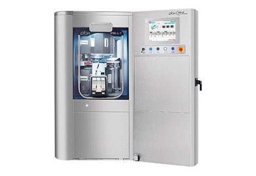 The press specializes in producing single, double, and triple-layer tablets without needing additional change parts. It requires only a few grams of powder, making it ideal for R&D and pilot batches. Its geometry replicates a medium-sized production press, providing realistic compression data. With options for various tooling formats and production feeders, it can be easily converted for pilot-scale production, supporting applications like core rod and tablet-in-tablet.